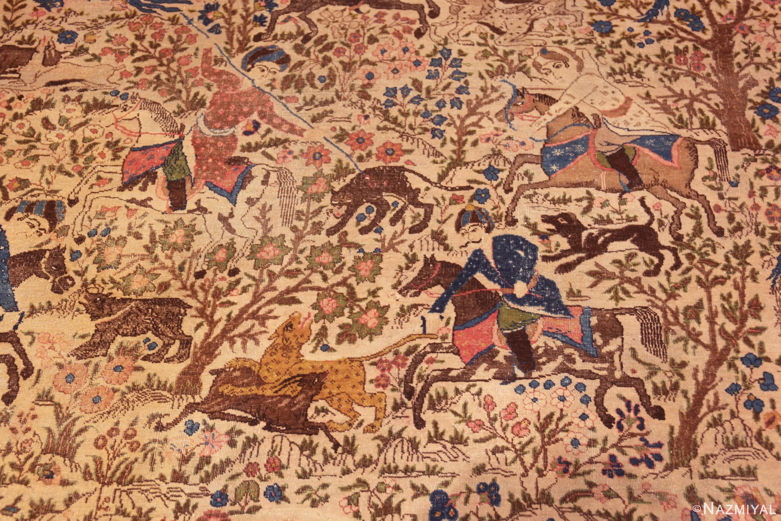 طراحی چهرهی انسان در فرش ایرانی کار سادهای نیست، اما در فرش شکارگاه، این بخش با مهارت ویژه انجام میشود و یکی از نشانههای ارزشمندی فرش است.