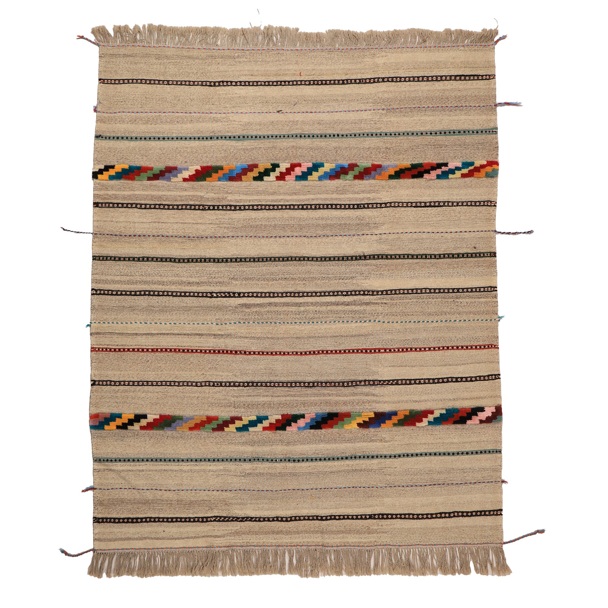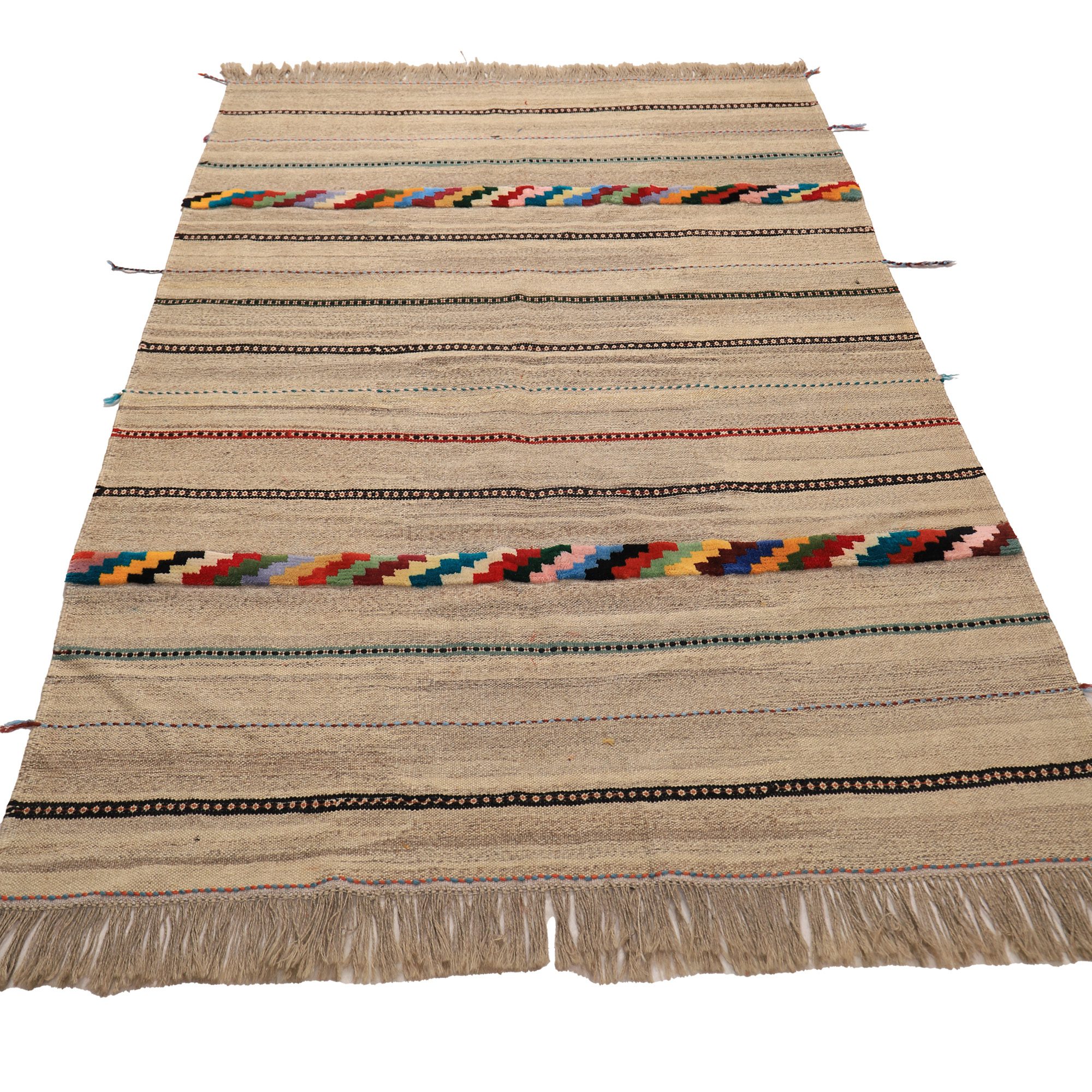 گلیم گبه دستبافت سه متری مدل مدرن زمینه کرم کد 4040614