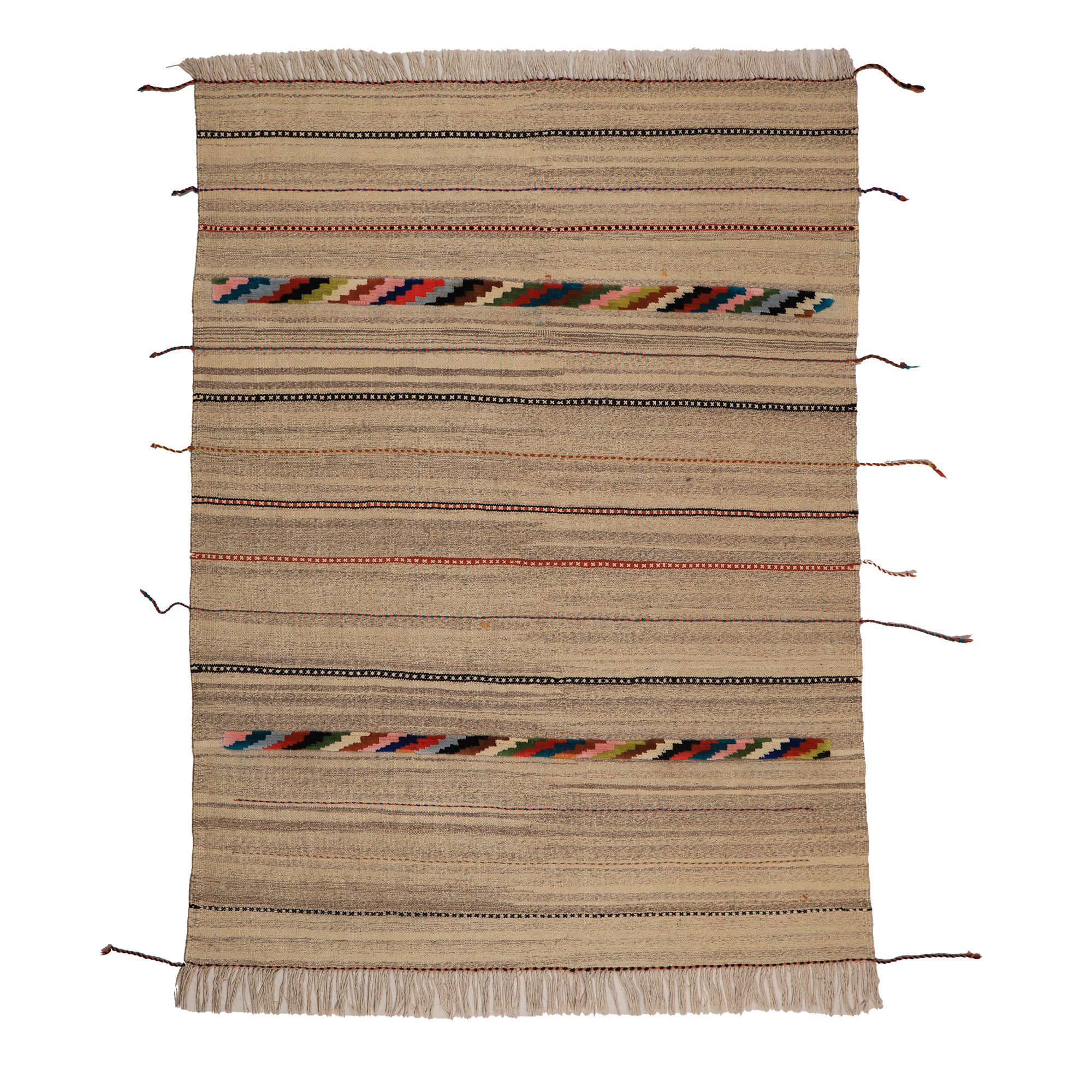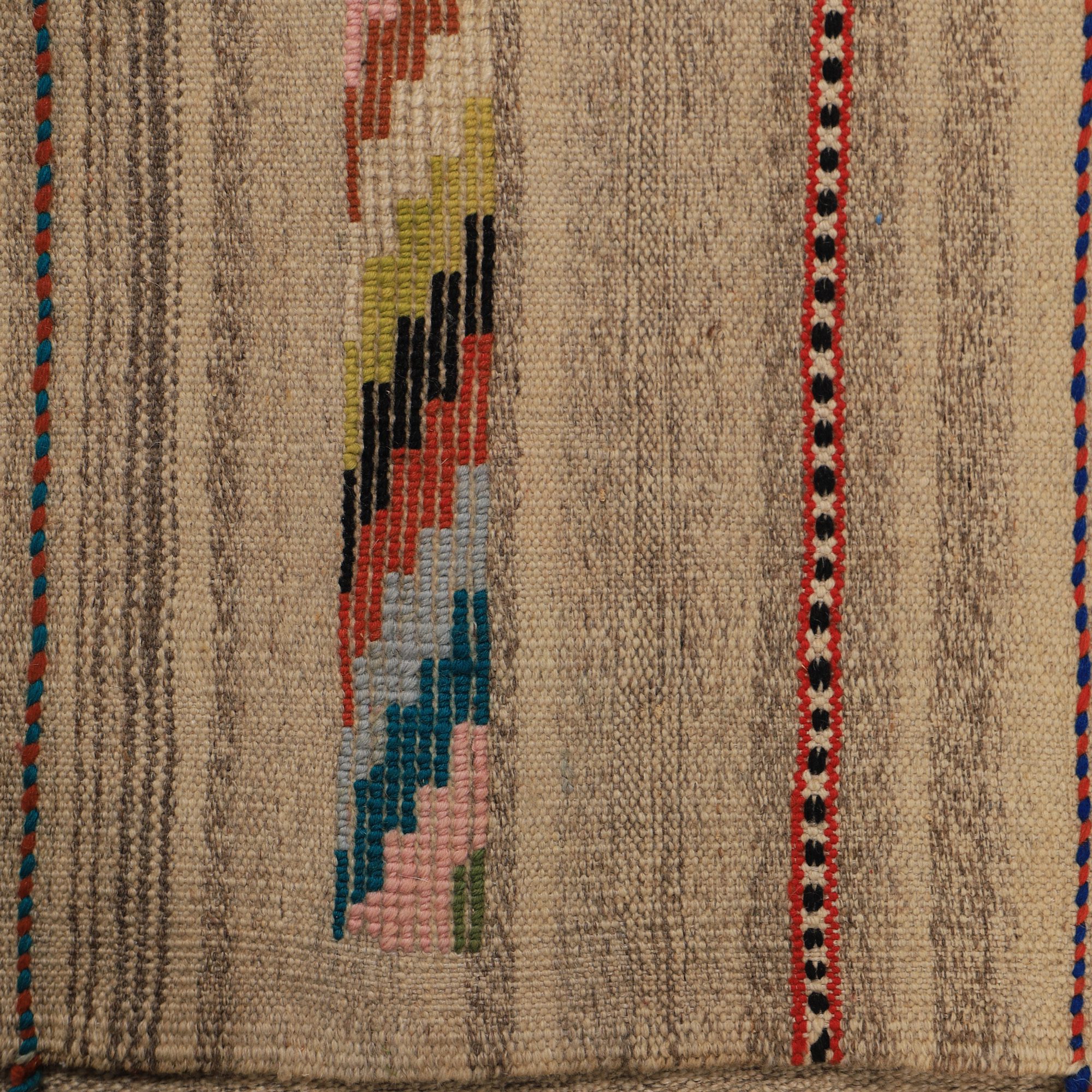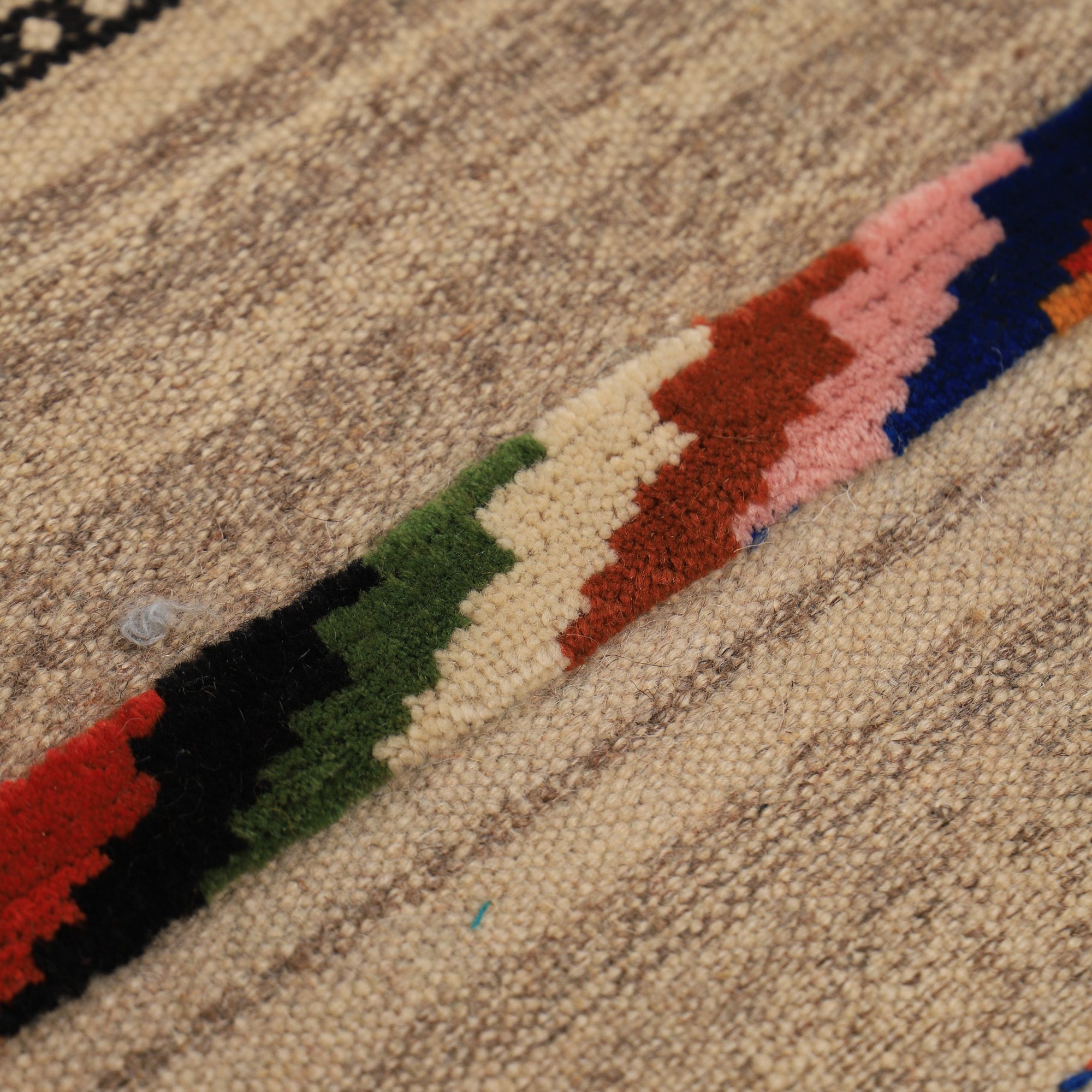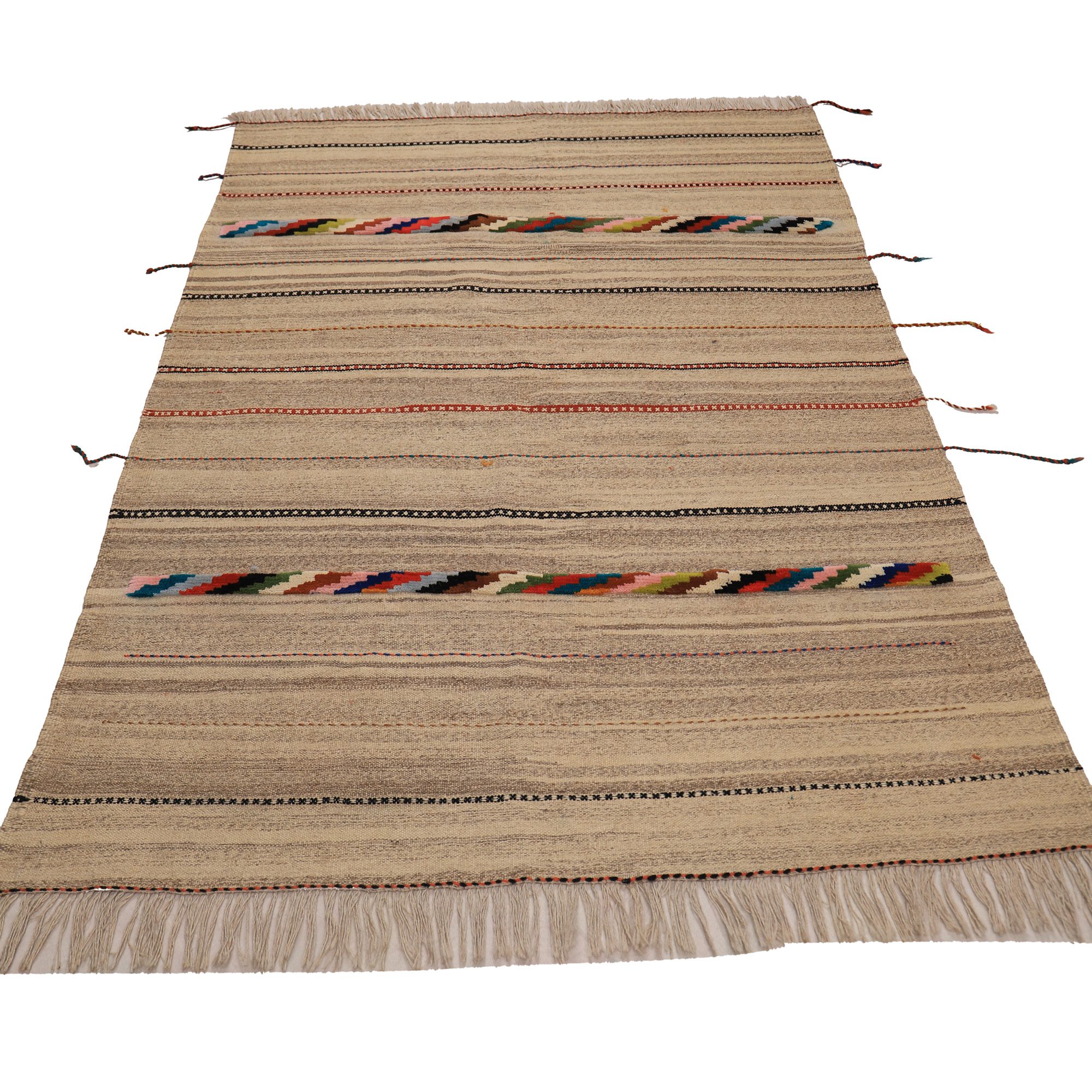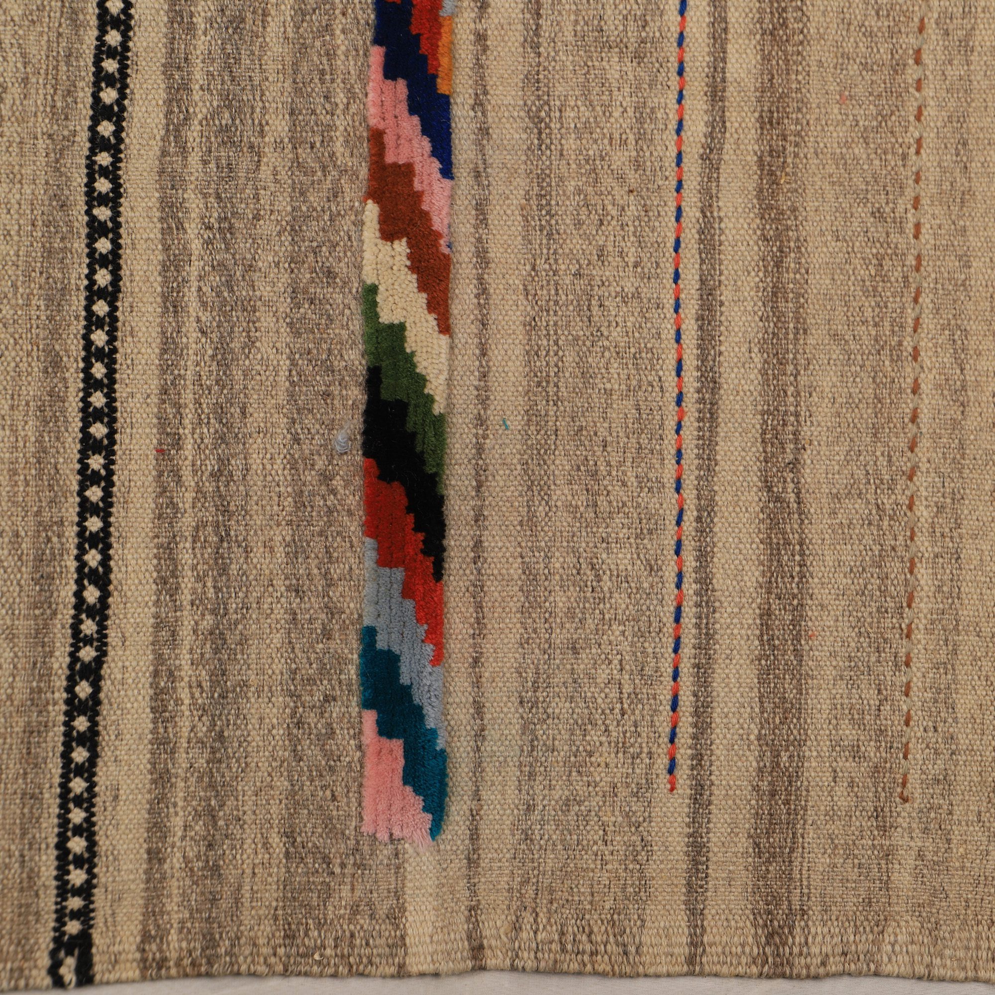 این گلیم ذهنی بافت بوده و از نقشه خاصی تبعیت نمیکند. ذهنی بافت بودن این گلیمها باعث میشود تا نگارههای این دست بافتهها نظم و قاعده مشخصی نداشته باشند. همین موضوع نیز بر جذابیت آن میافزاید. رنگهایی که به عنوان نخهای گلیم استفاده میکنند، کاملا طبیعی بود و از محیط زندگی عشایر گرفته میشود.این گلیم بافت اصفهان است.این گلیم به صورت دو رو بافته شده به گونه ای که هر دو طرف آن مثل یکدیگر است و از هر دوطرف میتوان استفاده کرد.اگر علاقهمند به سبکهای مینیمال و ساده هستید و از طرف دیگر دوست دارید فضایتان از هنراصیل وسنتی ایرانی خالی نباشد این گلیم به شما کمک خواهد کرد.