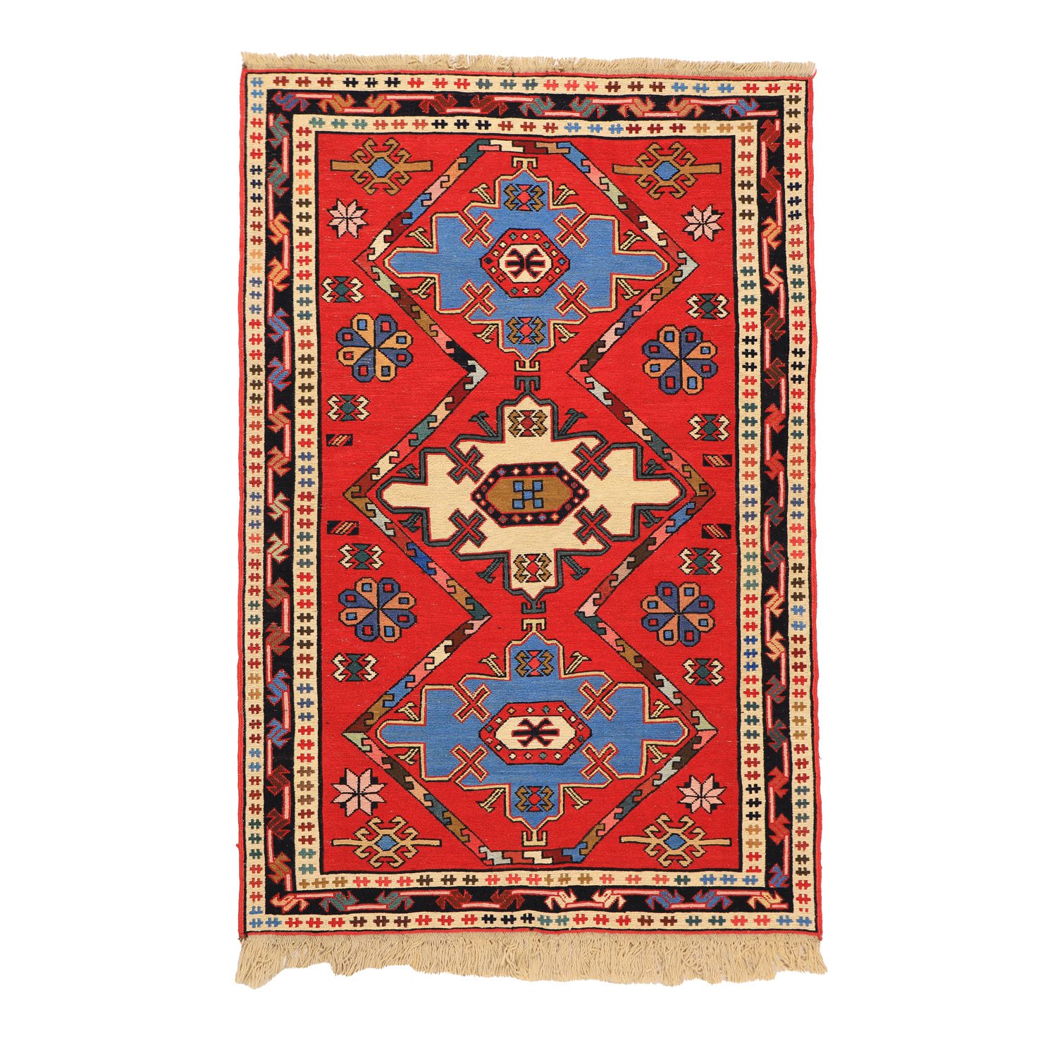 گلیم یک و نیم متری دستبافت مدل ورنی زمینه قرمز کد 40404931